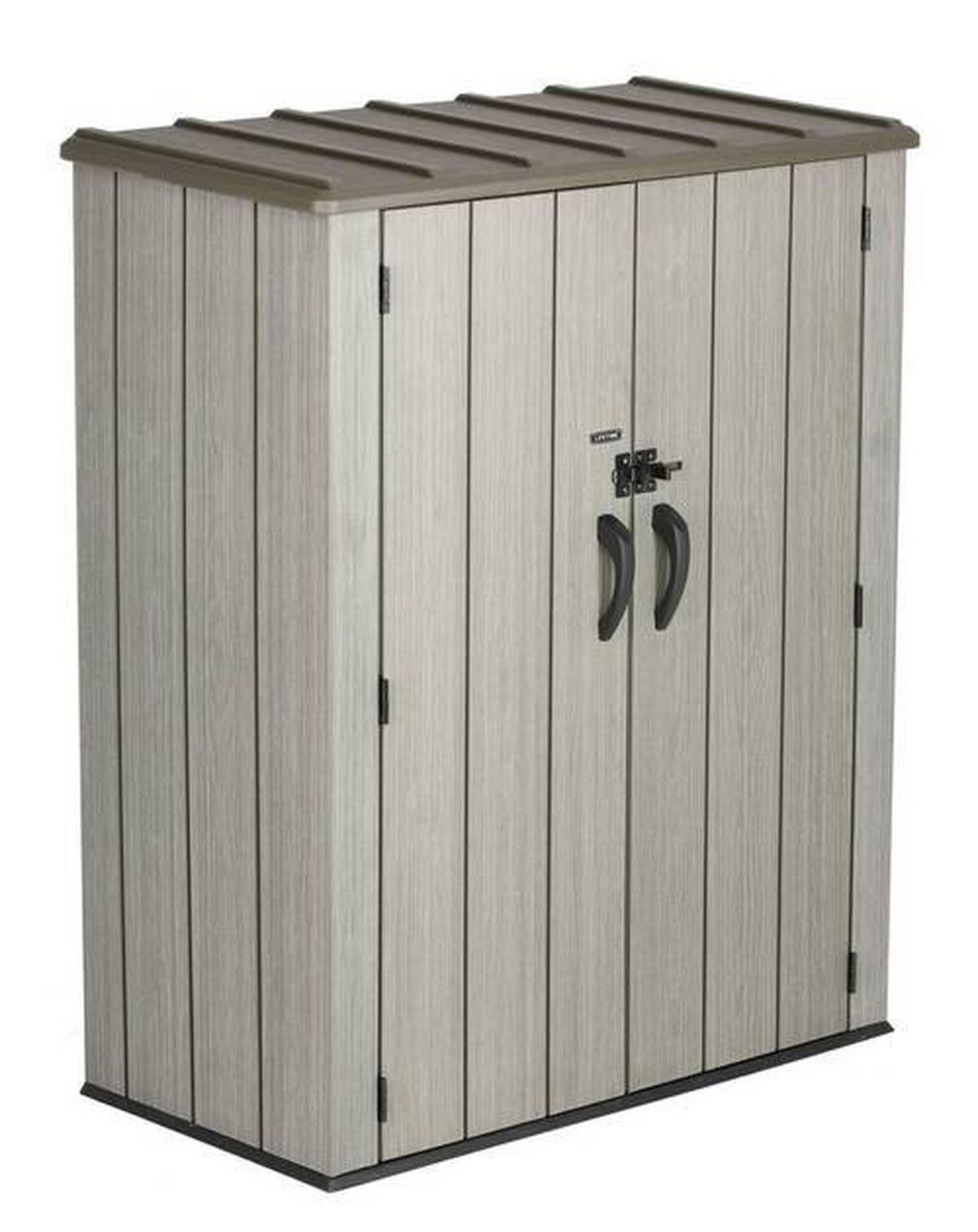 GARTENSCHRANK, Geräteschuppen mit 2 Tür, Antidumping Design, Tannenholz, Grau+Weiß