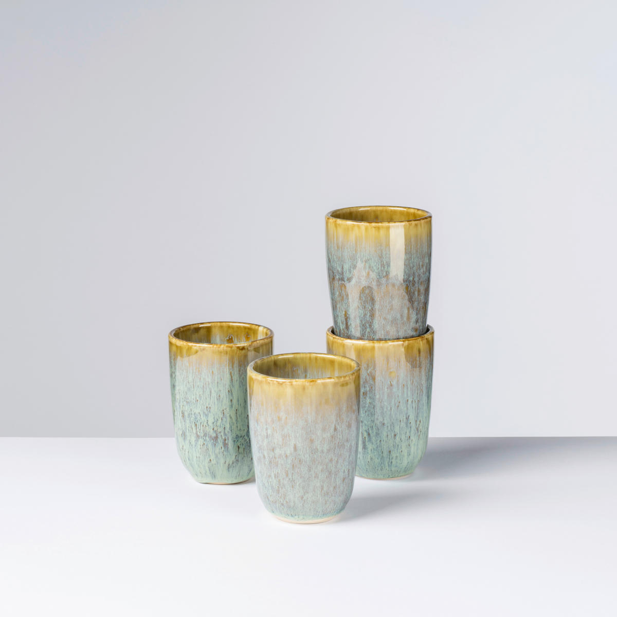 KAFFEEBECHERSET FLUSSUFER 4-teilig  - Braun/Grün, Basics, Keramik (8,4/11,5cm) - GipfelstückGipfelstück