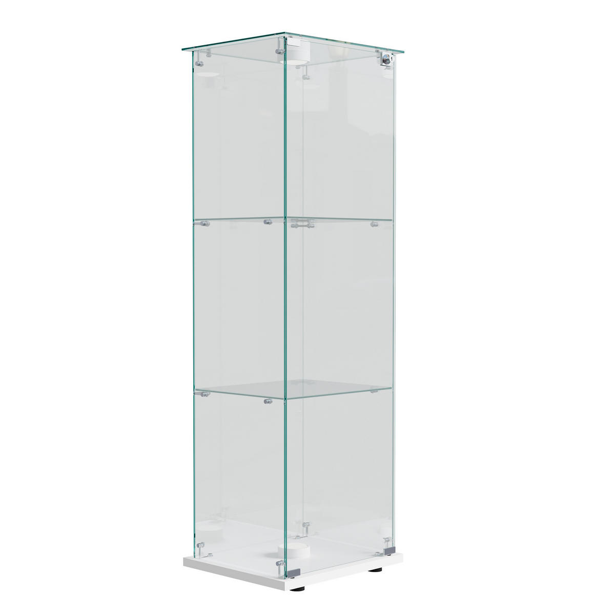 GLASVITRINE Mit LED, 3 Regale, Schloss, Glas-Schrank Für Wohnzimmer
