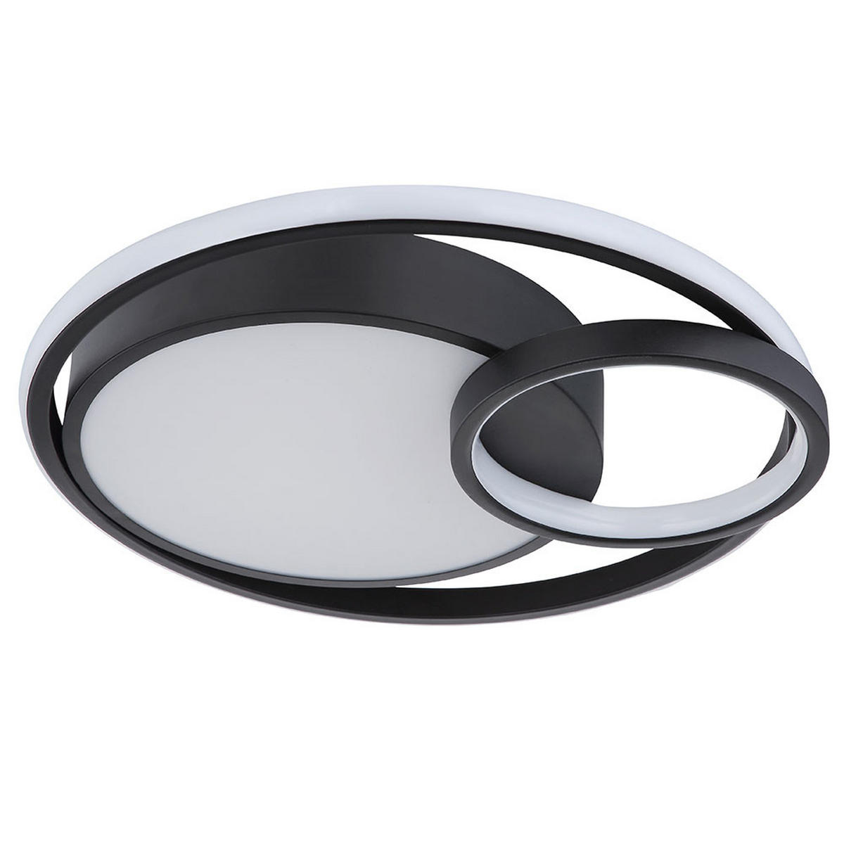Die LED DECKENLEUCHTE Kamilla besticht durch ihr matt schwarzes Metallgestell und den opalweißen Kunststofflampenschirm, die zusammen eine stilvolle und dezente Raumbeleuchtung schaffen. Mit einem Durchmesser von 40 Zentimetern verteilt diese Leuchte das Licht gleichmäßig und sorgt für angenehme Beleuchtung in Wohn- oder Arbeitsräumen. Das fest verbaute LED-Leuchtmittel garantiert eine langlebige und wartungsarme Nutzung, während das minimalistische Design ohne Schalter für eine schlichte Optik sorgt. Diese Deckenlampe ist eine attraktive Lösung, um moderne Akzente in jedem Raum zu setzen.