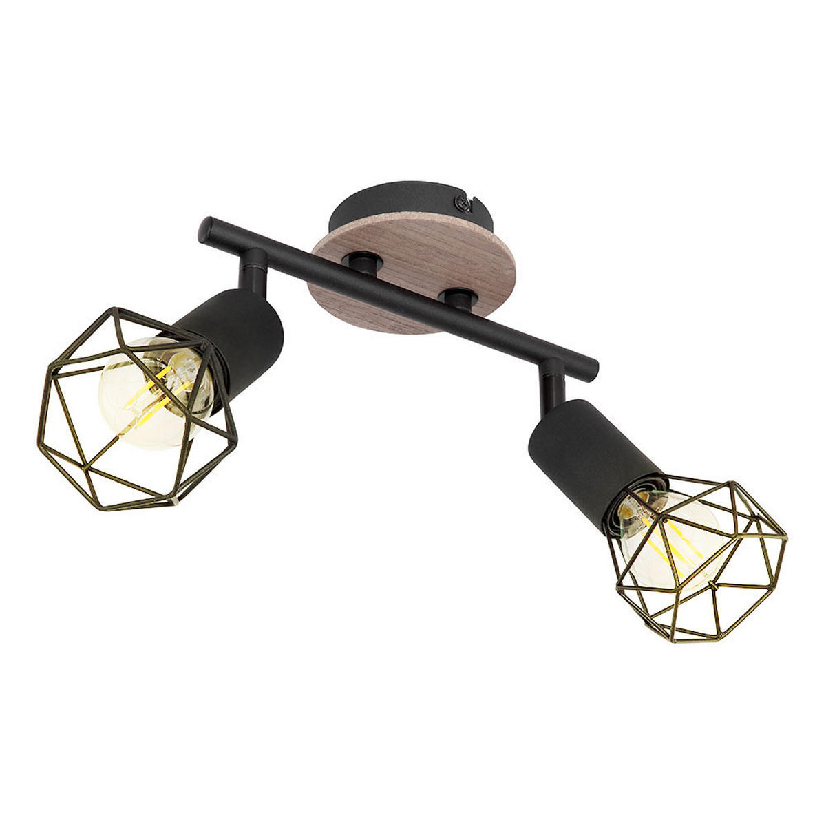 Diese LED Deckenleuchte präsentiert sich im modernen Design mit einem Gestell aus mattem Metall und Lampenschirmen in ansprechender Holzoptik. Die schwarze Farbe unterstreicht den zeitgemäßen Stil der Leuchte, die ideal für verschiedene Wohnbereiche geeignet ist. Ausgestattet mit zwei LED Leuchtstellen, verfügt die Deckenlampe über bewegliche, schwenkbare Spots, die individuell ausgerichtet werden können und so eine flexible Beleuchtung ermöglichen. Der Lampenschirm besticht durch ein attraktives Drahtgeflecht, das der Leuchte eine leichte und luftige Optik verleiht. Ohne Schalter erhältlich, lässt sich die Leuchte komfortabel über das vorhandene Stromnetz steuern. Diese 2flammige Deckenleuchte fügt sich harmonisch in moderne Einrichtungsstile ein und sorgt für eine gezielte Ausleuchtung von Wohnräumen.