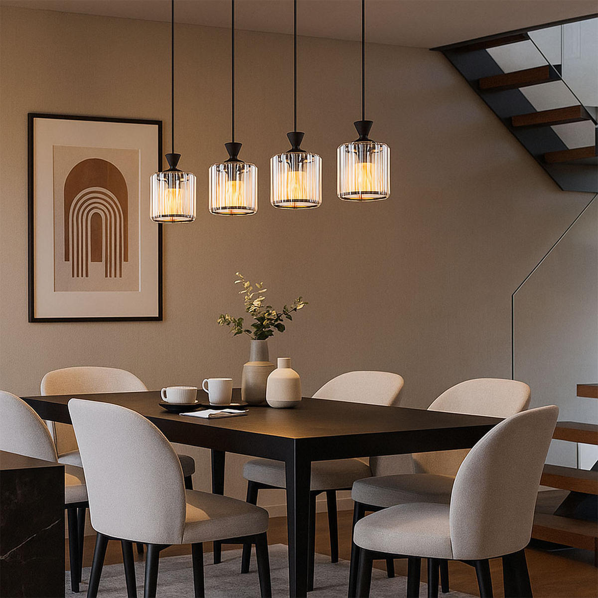 Diese stilvolle LED Hängeleuchte besticht durch ihr schwarz-mattes Metallgestell und die klaren Kristalle, die für ein faszinierendes Lichtspiel sorgen. Mit vier Leuchtquellen schafft die Lampe eine angenehme und zugleich brillante Atmosphäre in Ihren Wohnräumen. Der Lampenschirm aus Acryl unterstützt die gleichmäßige Lichtverteilung und verbindet modernes Design mit hochwertiger Verarbeitung. Ideal für Ess- oder Wohnbereiche, lässt sich die Leuchte mit einer Höhe von 120 cm flexibel anpassen. Die inkludierten Leuchtmittel ermöglichen sofortigen Einsatz ohne zusätzliche Anschaffungen.