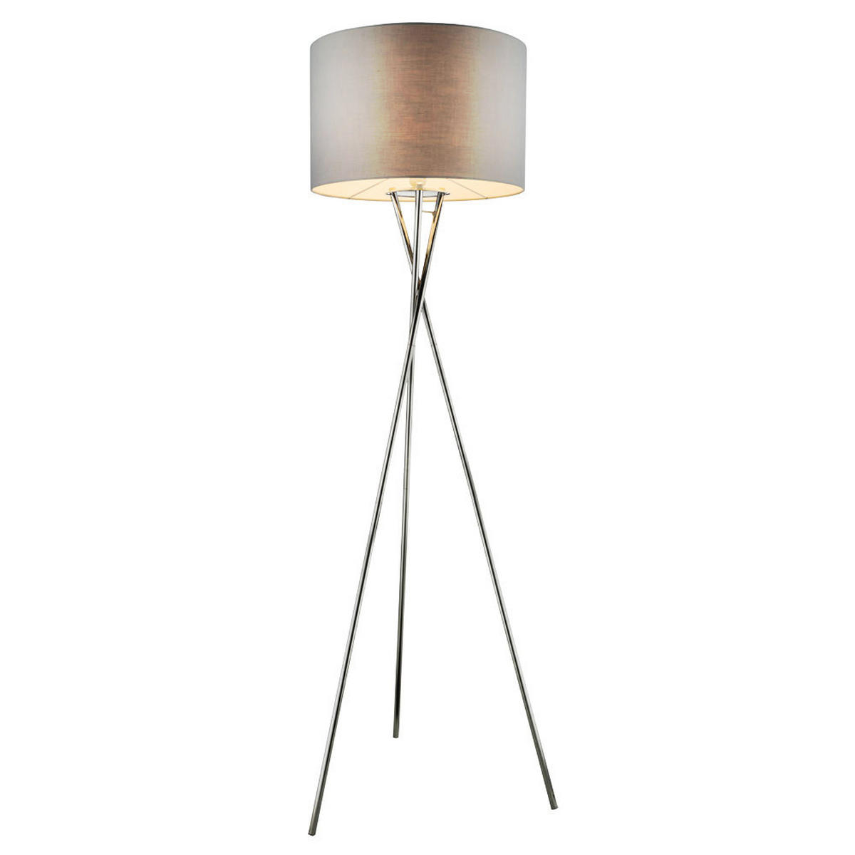 Elegante LED Stehleuchte mit Chrom und grauem Textilschirm