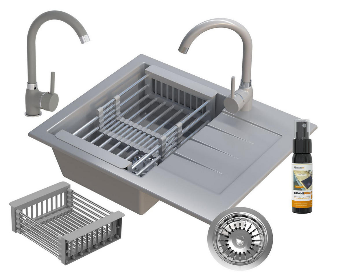 Granitan SPÜLBECKEN Milano mit Batterie Siphon