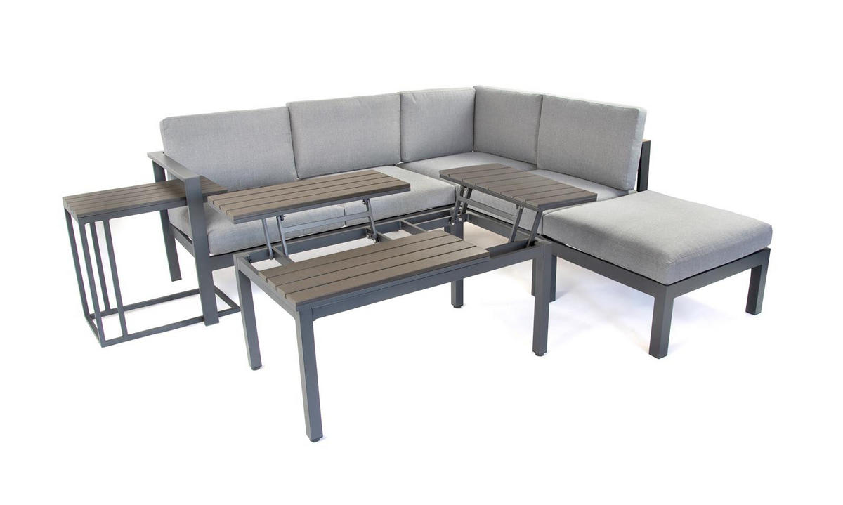 Green Spirit LOUNGE-SET Porto Grau Aluminium höhenverstellbarer Tisch für 5 Personen