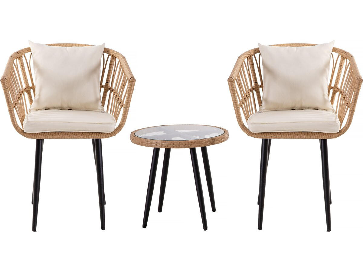 Rattan-Gartengarnitur "Vela" - 2 Personen - Schwarz/Bambus :Entdecken Sie die zurückhaltende Eleganz der Rattan-Gartengarnitur 'Vela', die für zwei Personen gedacht ist. Die beiden 57 x 58 x 83 cm großen Stühle bieten optimalen Komfort, während der Tisch mit einer 45 x 43,5 cm großen Glasplatte einen Hauch von Raffinesse verleiht. In einer Fusion aus zeitgenössischem Schwarz und der Wärme des Bambus schafft dieses Set einen intimen und stilvollen Außenbereich. Perfekt für entspannende Momente zu zweit in einer harmonischen Umgebung.Rattan-Gartenset "Vela" - 2 Personen - 2 Stühle - 1 Tisch mit Glasplatte - Farbe Schwarz und Bambus .Beschreibung: Entscheiden Sie sich für die intime Eleganz der Rattan-Gartenmöbel 'Vela', die für zwei Personen gedacht sind und geschickt modernes Schwarz mit der natürlichen Wärme von Bambus kombinieren, um einen raffinierten und gemütlichen Außenbereich zu schaffen.