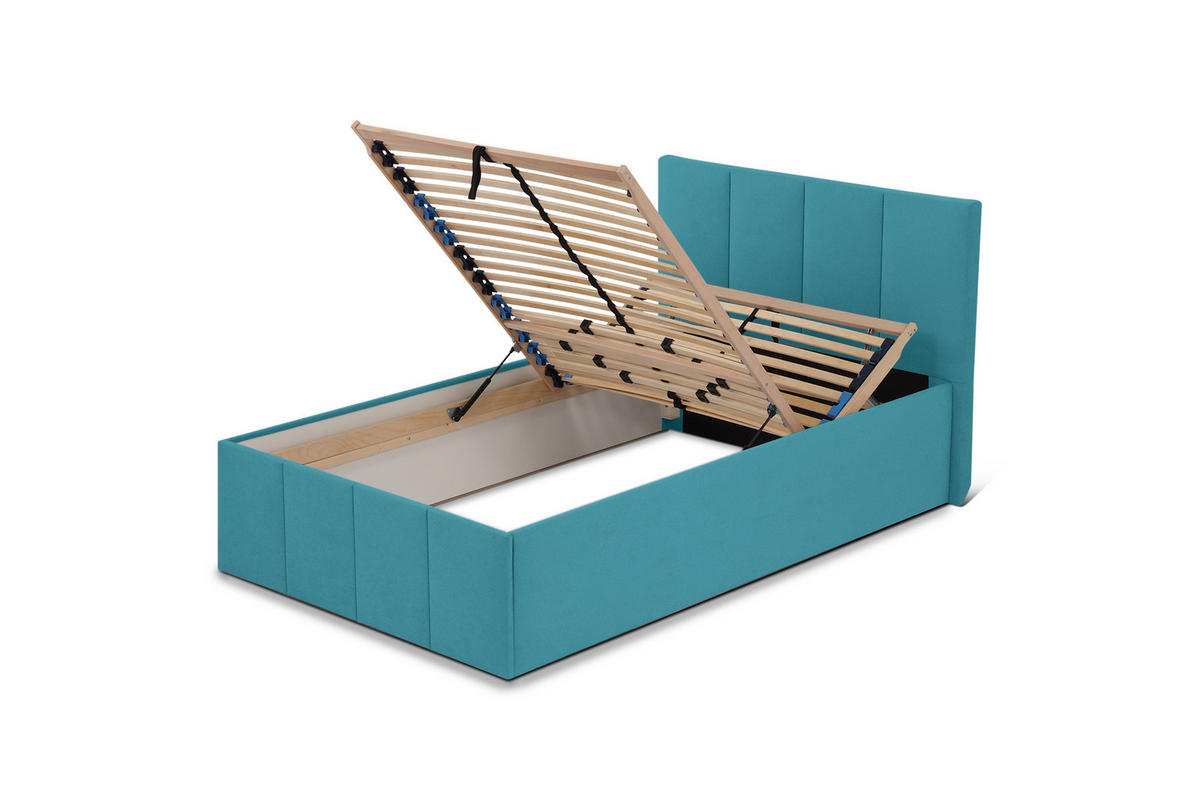 Halmon Schlafkomfort Betten POLSTERBETT Dalas Blau 140 x 200 x 40 cm Bettkasten Mit hochwertiger Matratze H3 (bis 120 kg) und Lattenrost