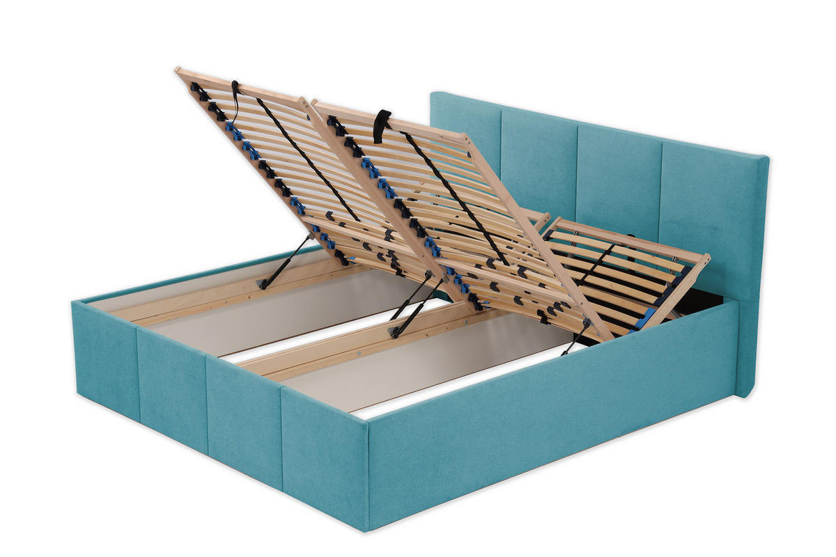 Halmon Schlafkomfort Betten POLSTERBETT Dalas Blau 180 x 200 x 40 cm Bettkasten Mit hochwertiger Matratze H2 (bis 100 kg) und Lattenrost