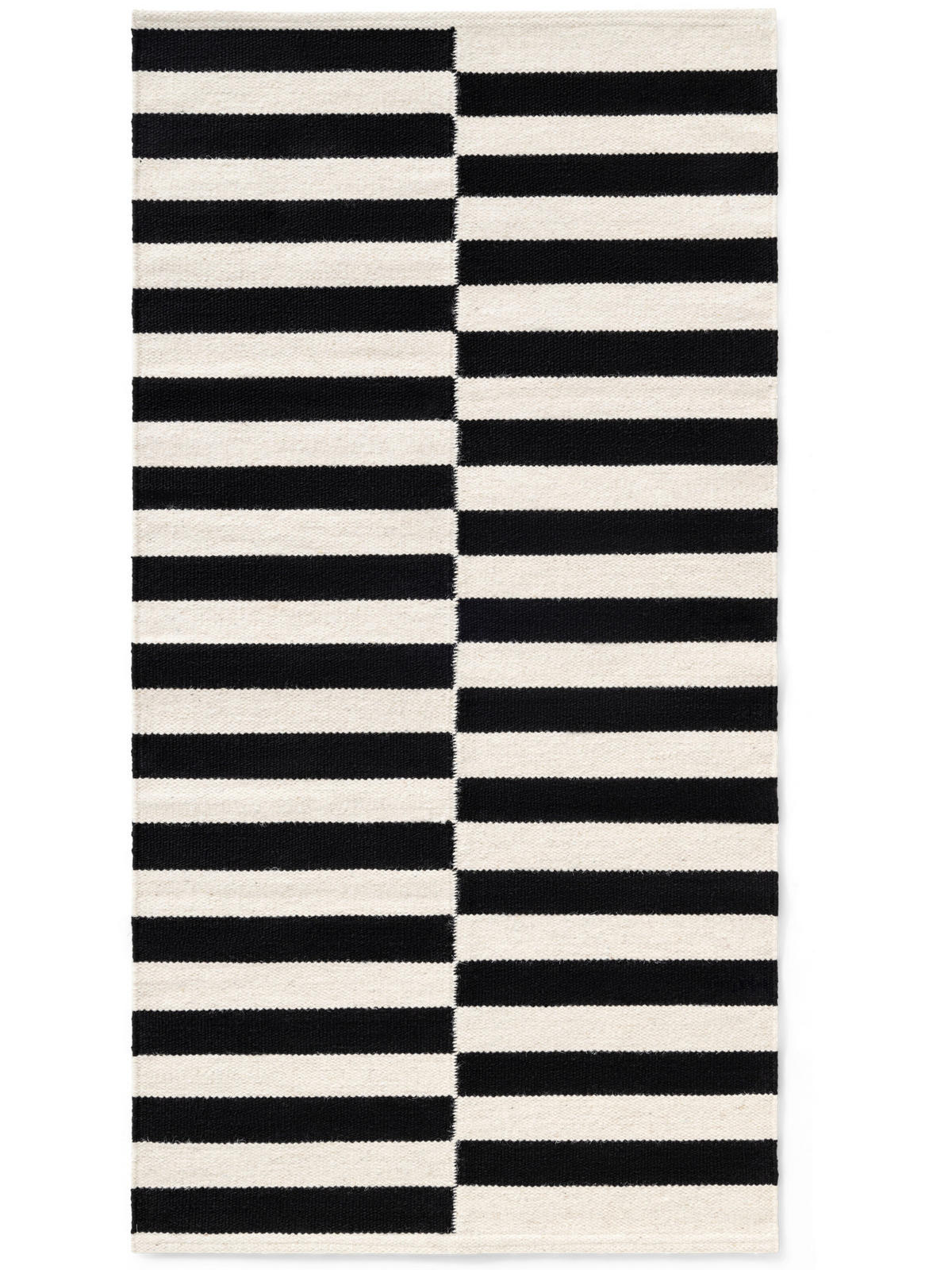 Für gemütliche Wohnlichkeit spricht sich dieser rechteckige LINEA NATURA Wollteppich (B x L: ca. 80 x 150 cm) – handgewebt – in Schwarz und Weiß aus.