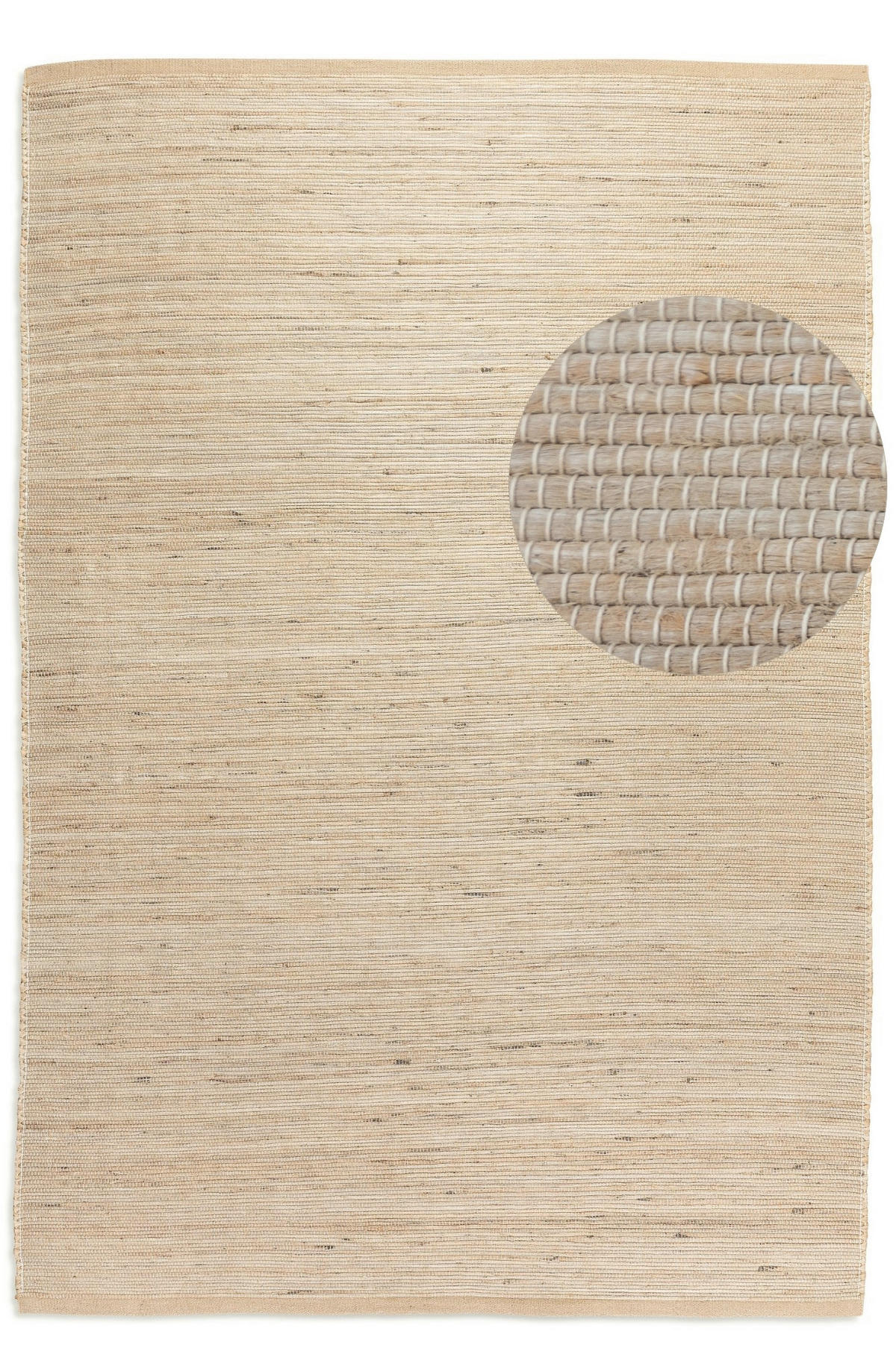 Naturfaser-Textil-Beschaffenheiten hat die Oberfläche durch ca. 40.00 % Jute, 30.00 % Baumwolle und 30.00 % Wolle. Der natürliche Mix steigert den Feuchtigkeitsausgleich. Da das beidseitig verwendbare Wohnelement entsprechend gefertigt und