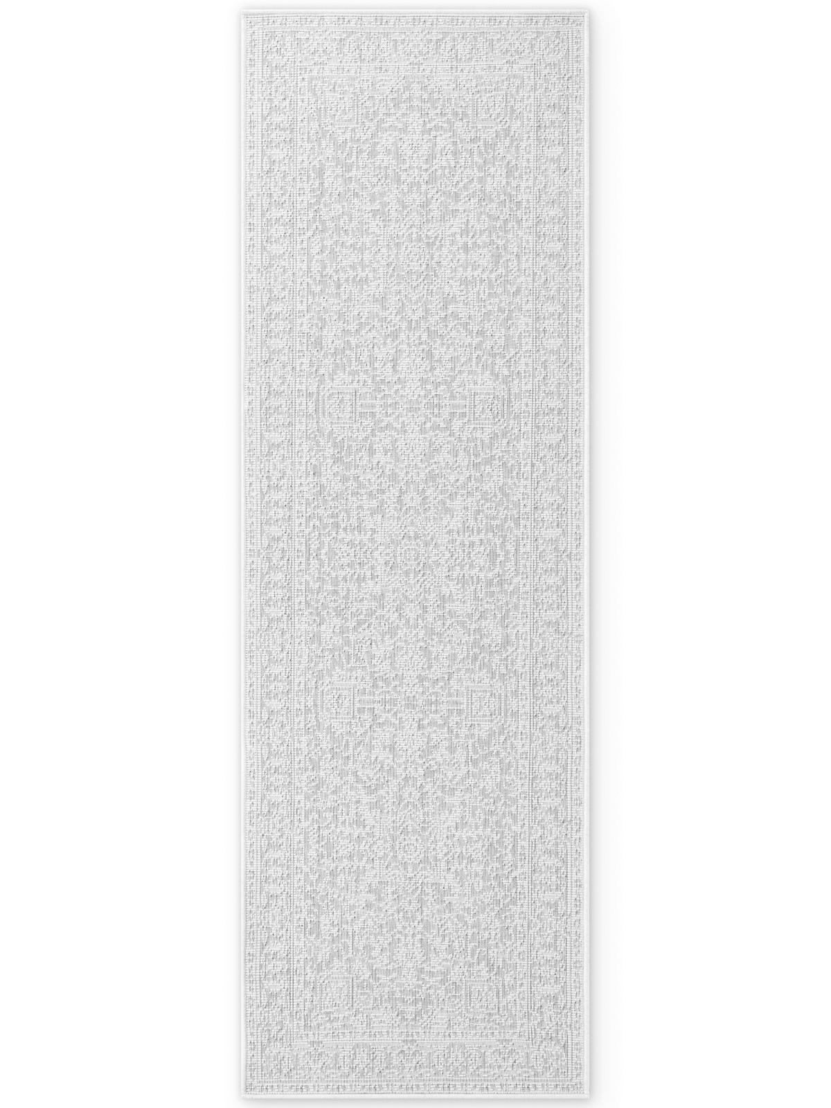 Ornament-Dessin zur Design-Maxime. Betreiben Sie Wohlfühloasen-Tuning vom Feinsten mit einem grauen und weißen NOVEL Outdoorteppich (rechteckig: ca. 80 x 250 cm), der sich als Augenmagnet inszeniert!