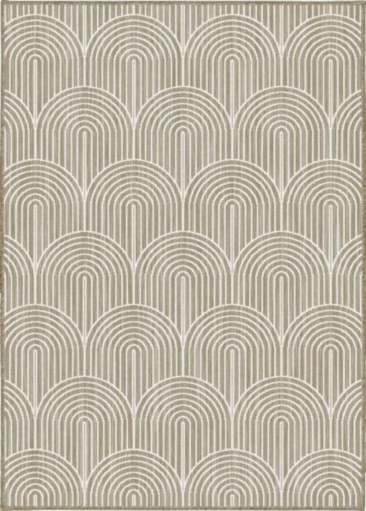 Dieser weiße und cappuccinofarbene NOVEL Outdoorteppich –