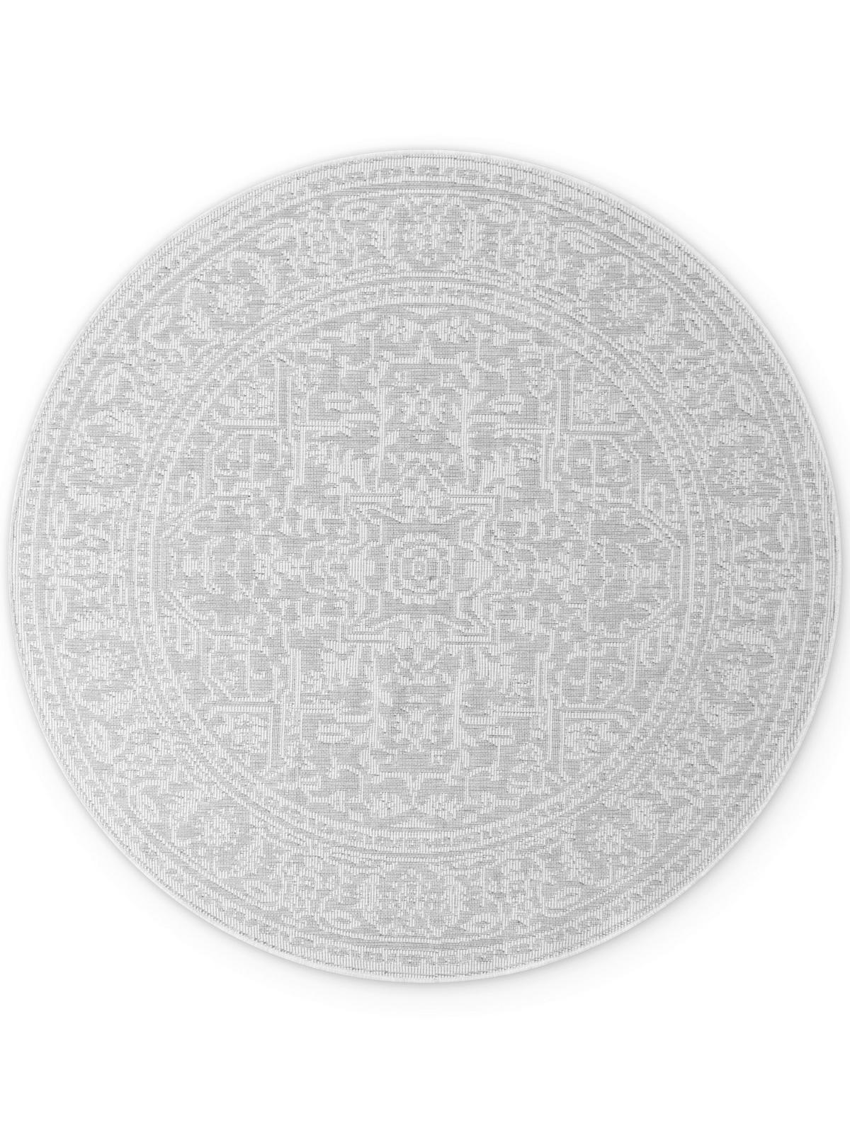 Ornament-Design Ihr Freiluft-Meublement ab. Verpassen Sie Ihrem privaten Place to be mit diesem grauen und weißen NOVEL Outdoorteppich (rund: ca. 160 cm) den Feinschliff!
