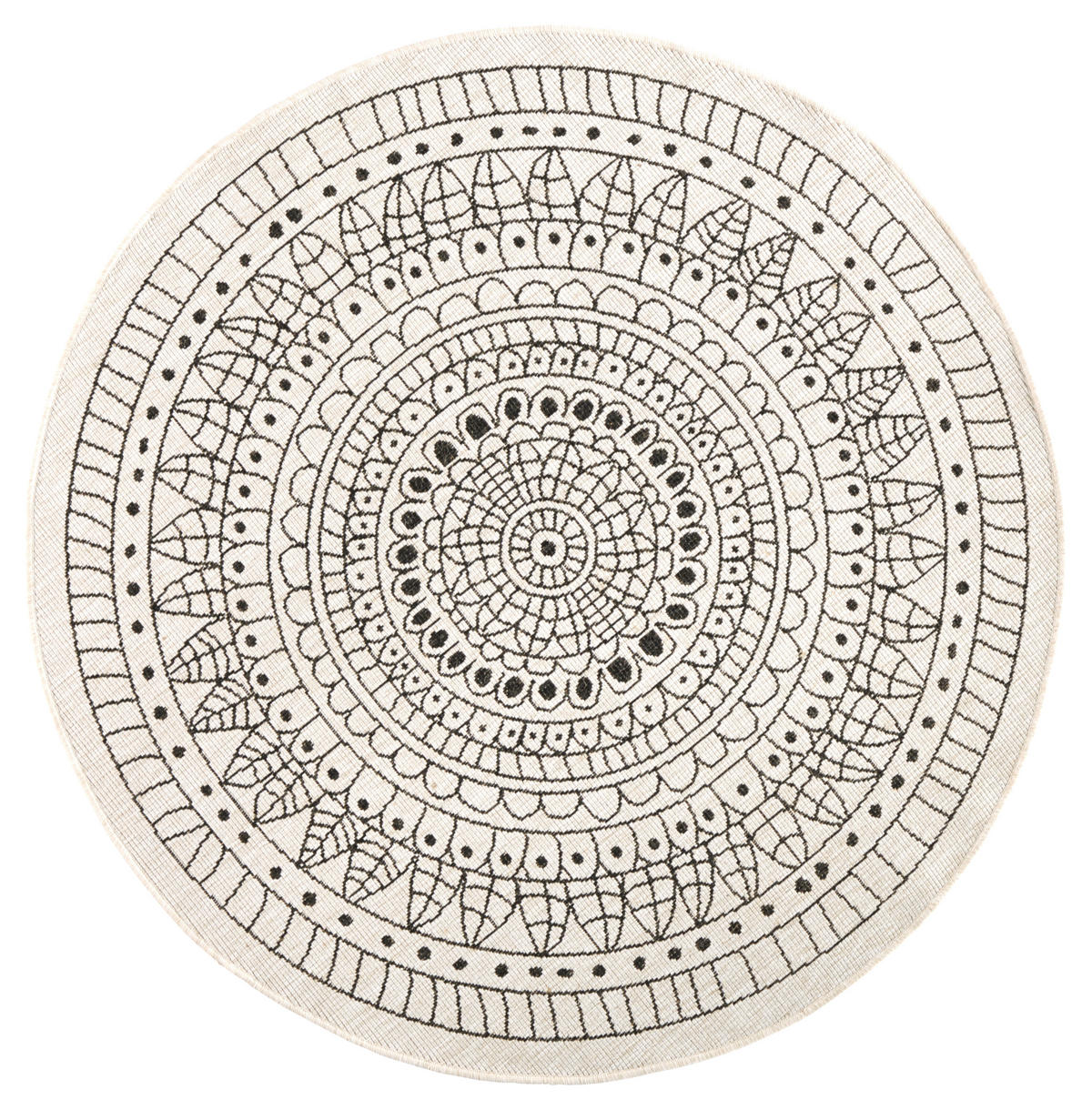 Mandala-Dekor in Erscheinung. Dieser Outdoorteppich (rund: ca. 200 cm) in Cremefarben und Schwarz verleiht Ihrer Wohlfühl-Location den Feinschliff!