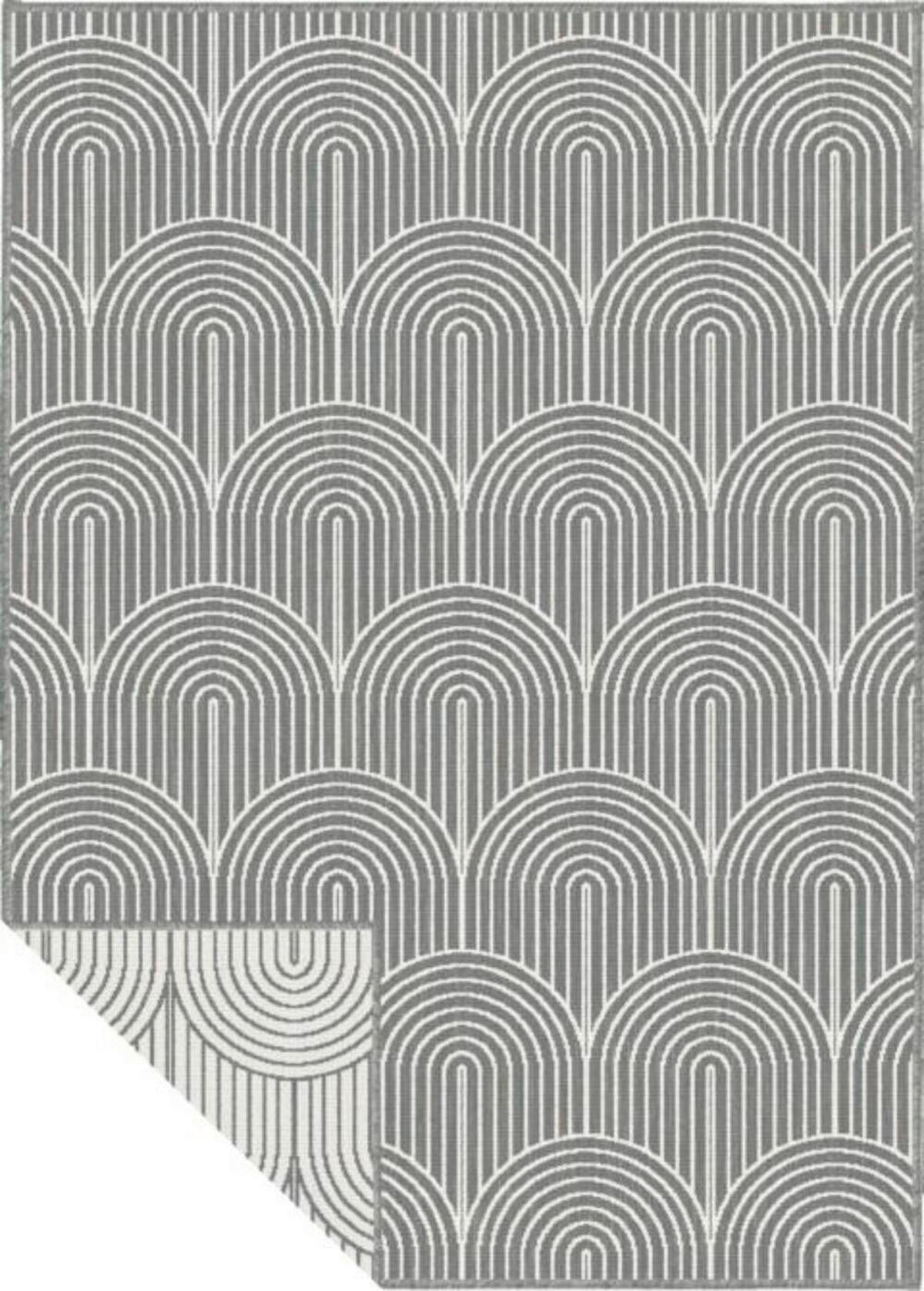 geometrische Design. Betreiben Sie Wohlfühloasen-Tuning vom Feinsten mit einem NOVEL Outdoorteppich (rechteckig: ca. 240 x 330 cm) in Silberfarben und Weiß, der sich als It-Piece inszeniert!