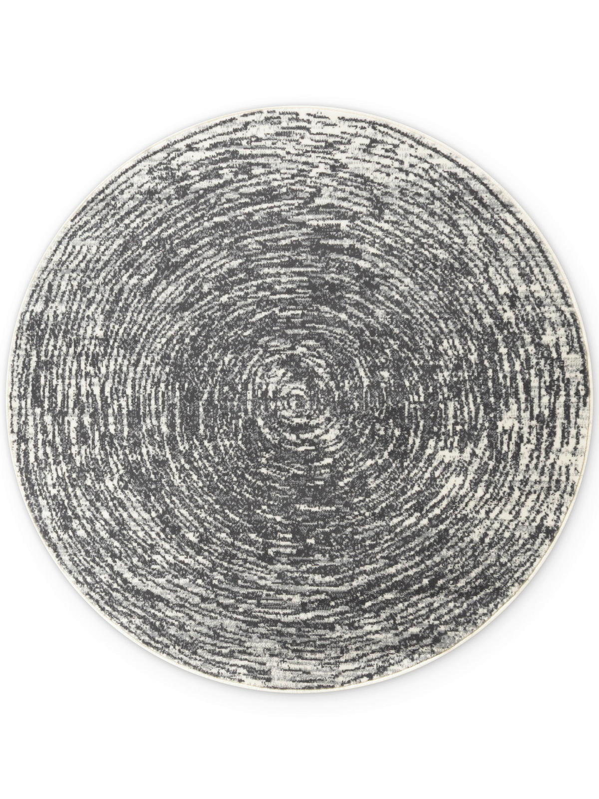 Dieser cremefarbene und graue NOVEL Webteppich (Durchmesser: ca. 160 cm) – gewebt und rund – setzt Ihr Mobiliar in Szene.