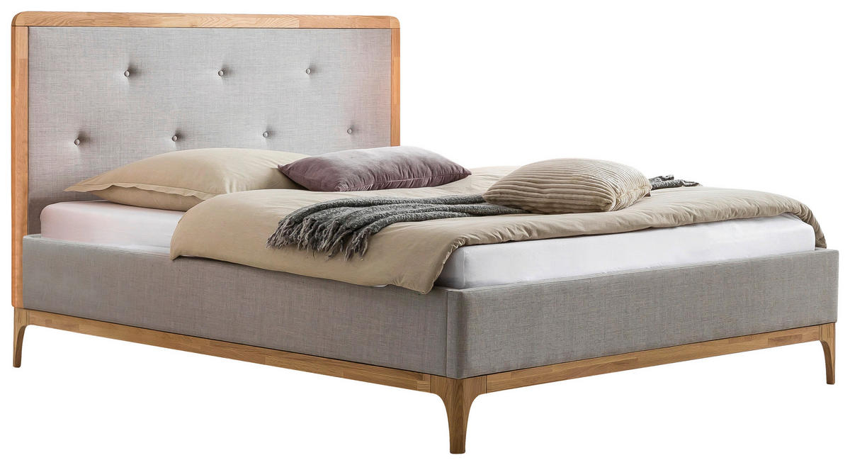 Knopfsteppung zum Gesamtbild bei. Als stimmige Details sind die hohen, runden Füße, die ebenso luftige Bodenfreiheit schaffen, Teil einer stringenten Designlogik. Entschleunigung beginnt jetzt – mit diesem HASENA Polsterbett (ca. 160 x 200 cm) in Eichefarben sowie Grau inklusive gepolstertem Kopfteil, das Sie sanft durch die Nacht begleitet!