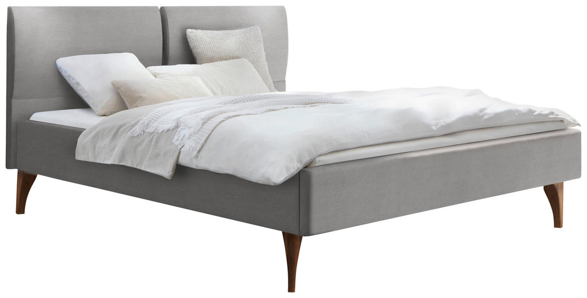 Nussbaumfarben und Grau inklusive gepolstertem Kopfteil sorgt für entspannende Nächte.