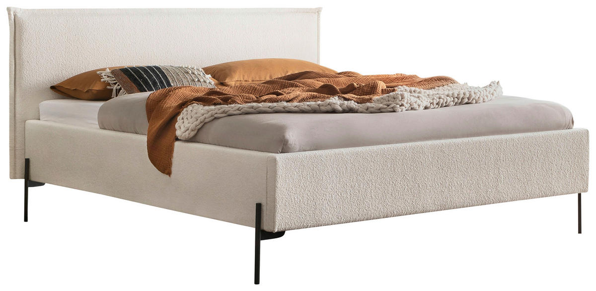 Ein gepolstertes Kopfteil gibt dem Gesamtbild eine heimelige Ausstrahlung. Das Design wird durch die hohen Rundrohr-Füße aus