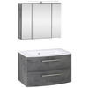 - Zubehör inklusive: Aufsatzbeleuchtung, Schalter-/Steckdosenkombination, Überlaufring, Waschbecken