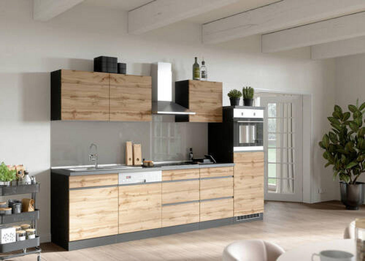 KÜCHENBLOCK 300 cm   in Graphitfarben, Eiche Wotan  - Eiche Wotan/Graphitfarben, Design, Holzwerkstoff (300cm) - HeldHeld