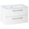 Waschtischkombi in Eichefarben und Weiß mit 2 Schubladen fürs stilvolle Bad