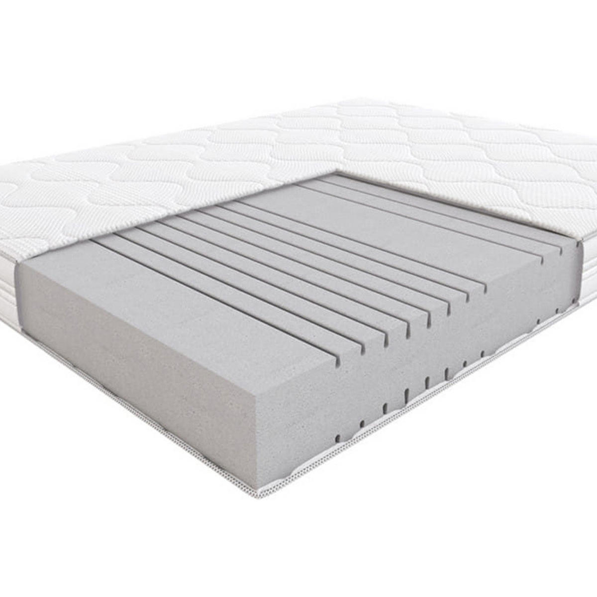 MATRATZE FOXTROT - AUFBAUHochelastischer Schaum: der Matratzenkern besteht aus Schaum mit hoher Dichte (40 kg/m3). Er zeichnet sich durch erhöhte Elastizität und Straffheit und gewährleistet somit die richtige Unterstützung der Wirbelsäule an der gesamten Länge. Das Material hat spezielle Einschnitte, die auf der Oberfläche sieben Zonen mit verschiedener Härte bilden. HYBRID-BEZUG