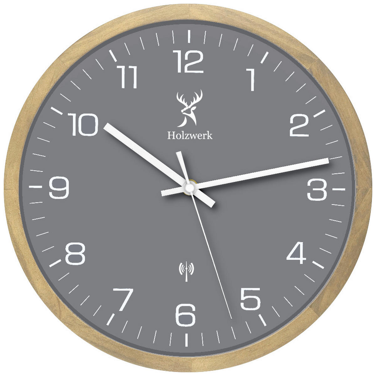 Holzwerk WANDUHR Holz Designer HARBURG (FUNK) Loft Wand Uhr, beige, grau, weiß