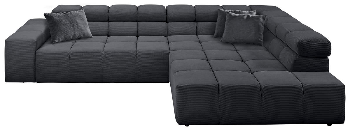 Rein in die Komfortzone: Dieses anthrazitgraue Ecksofa mit Cord-Bezug entführt Sie auf ein traumhaftes Terrain zum geruhsamen Durchatmen!