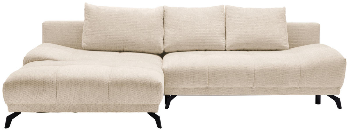 Ihr cremefarbenes Ecksofa mit Chenille-Bezug verführt dazu, behaglich die verdiente Me-Time zu genießen!