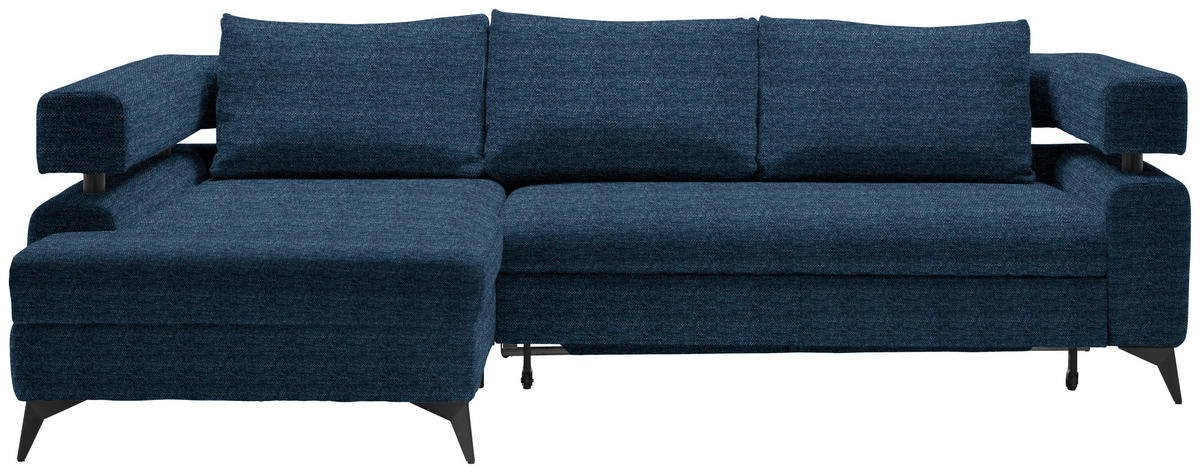 Ein Key-Piece, das Ihren Erwartungen gerecht wird: Dieses dunkelblaue Ecksofa mit Chenille-Bezug tut einiges fürs individuelle Wohnglück!