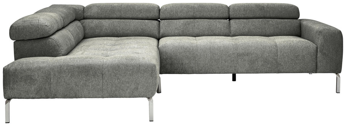 Absolut sehenswert Mit seiner lichten Farbgebung in Dunkelgrau ist das Polstermöbel ein geschmackvoller Blickfang im Interior-Konzept. Hohe Winkelfüße aus mattem Eisen in Chromfarben verleihen dem Design das gewisse Etwas und schaffen offene Bodenfreiheit.
