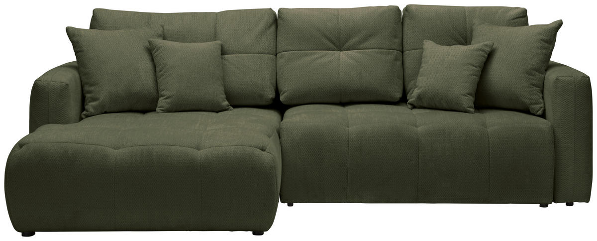 Können Sie sich etwas Besseres vorstellen als auf diesem dunkelgrünen Ecksofa mit Chenille-Bezug alles um sich herum zu vergessen?