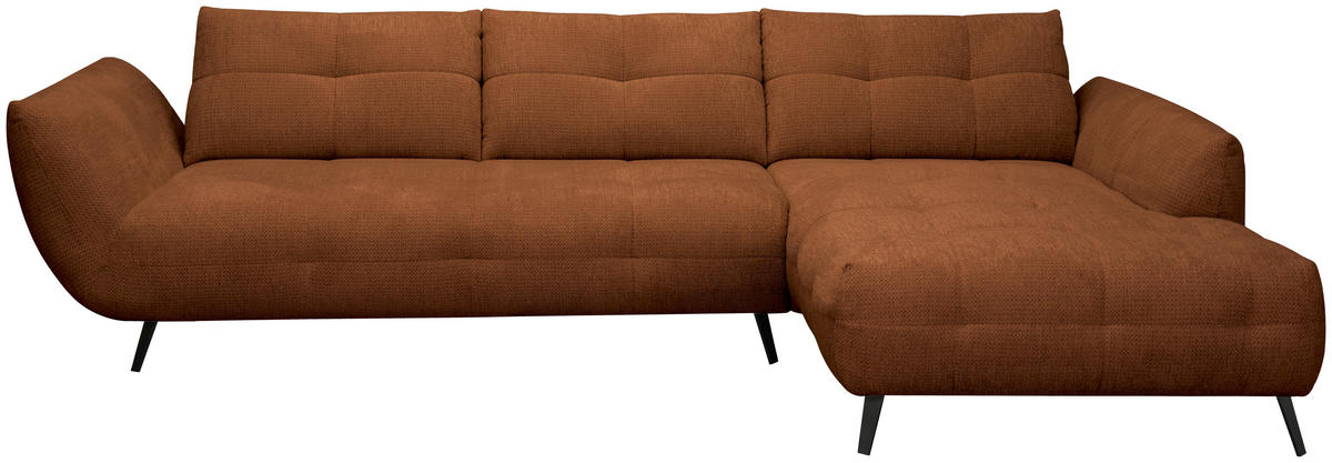 Können Sie sich etwas Besseres vorstellen als auf diesem dunkelorangen Ecksofa mit Chenille-Bezug alles um sich herum zu vergessen?
