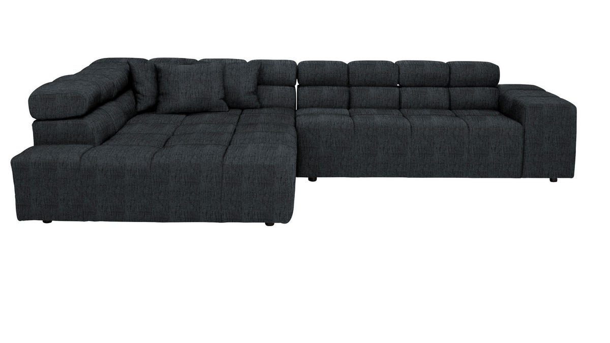 Wo eine ausgeglichene Life-Balance und häusliches Wohlempfinden gefragt sind, führt an diesem graphitfarbenen Ecksofa mit Flachgewebe-Bezug kein Weg vorbei!