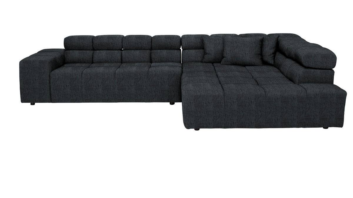 Gönnen Sie sich mit diesem graphitfarbenen Ecksofa mit Flachgewebe-Bezug ein famoses Upgrade für Ihr geliebtes Heim!