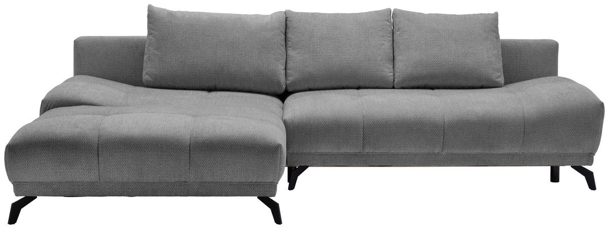 Rein in die Komfortzone: Dieses graue und dunkelgraue Ecksofa mit Chenille-Bezug entführt Sie auf ein traumhaftes Terrain zum geruhsamen Durchatmen!
