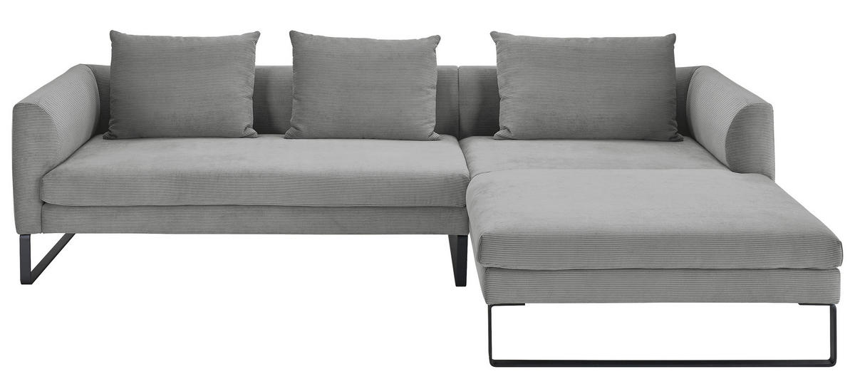 Als treue Begleitung für wonnige Time-outs daheim gesellt sich dieses graue Ecksofa mit Feincord-Bezug gerne zu Ihnen!