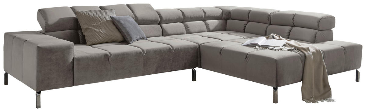 Dieses graue Ecksofa mit Velours-Bezug zaubert Ihnen bei jeder Gelegenheit zum Ausspannen ein Lächeln ins Gesicht!
