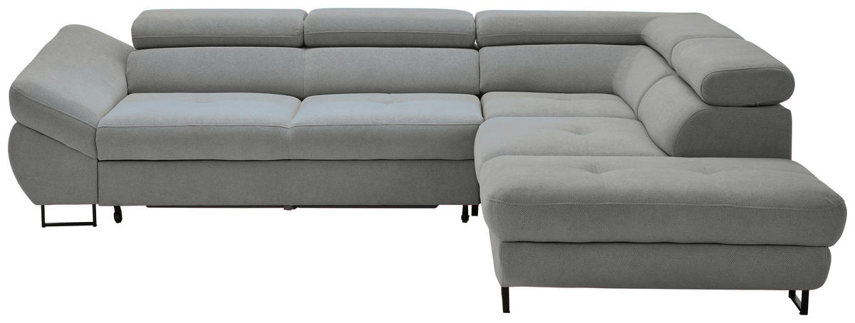 Verwöhnen Sie sich selbst mit diesem grauen Ecksofa mit Webstoff-Bezug!