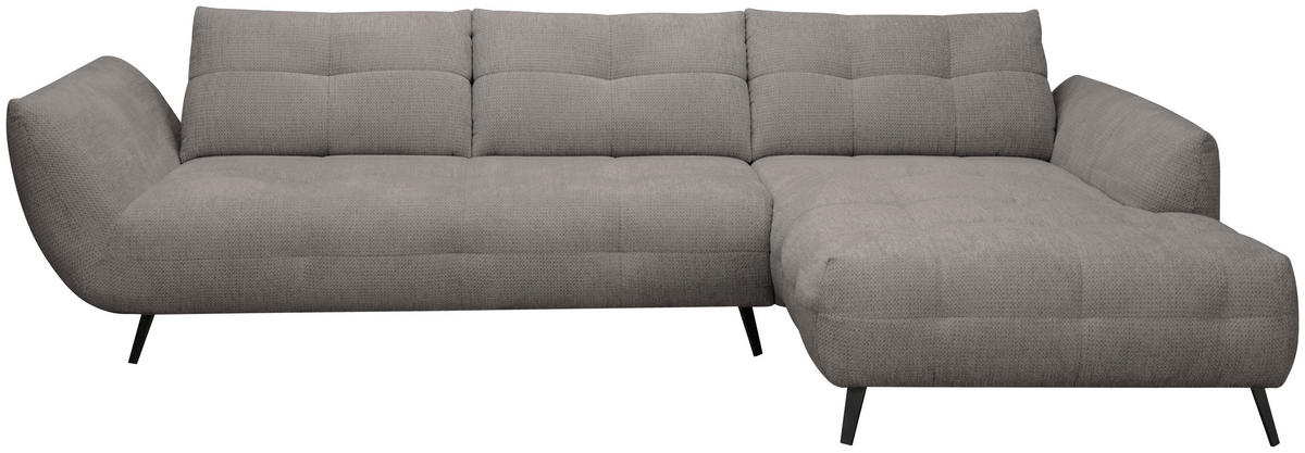 Genießen Sie Ihr Rendezvous mit der wohligen Unbeschwertheit des Seins auf diesem graubraunen Ecksofa mit Chenille-Bezug!