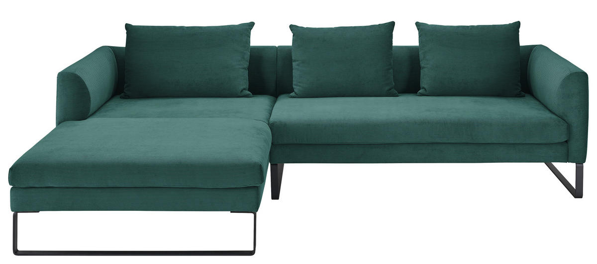 Als treue Begleitung für wonnige Time-outs daheim gesellt sich dieses grüne Ecksofa mit Feincord-Bezug gerne zu Ihnen!