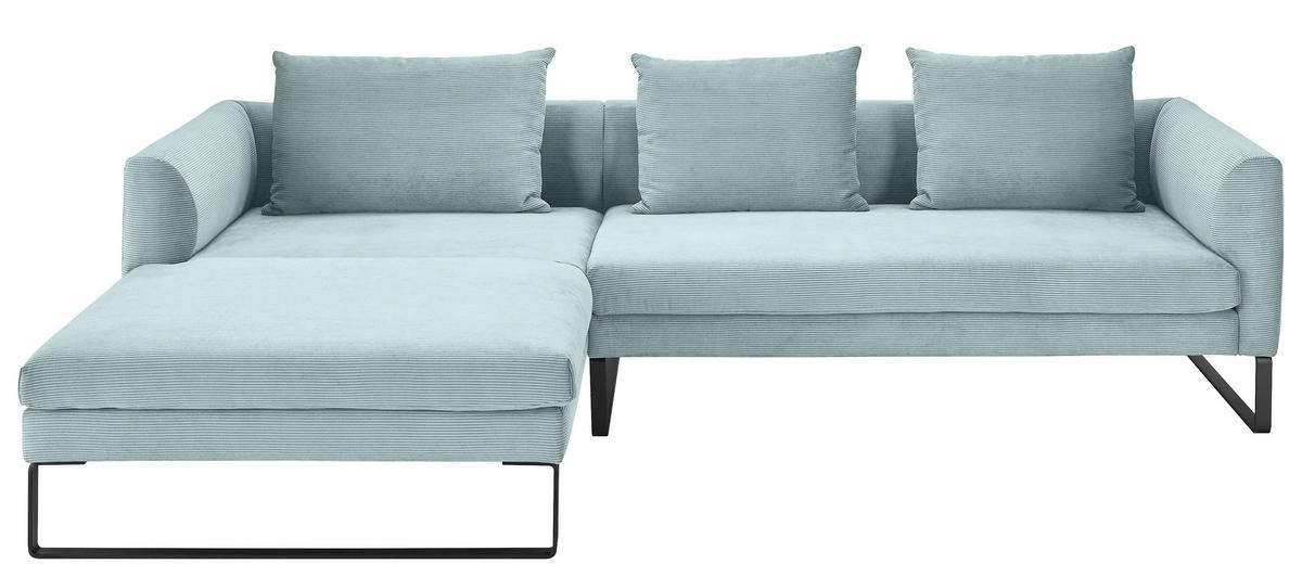Ein hellblaues Ecksofa mit Cord-Bezug als Erfolgsgarant für Ihre Well-Being-Strategie @home!