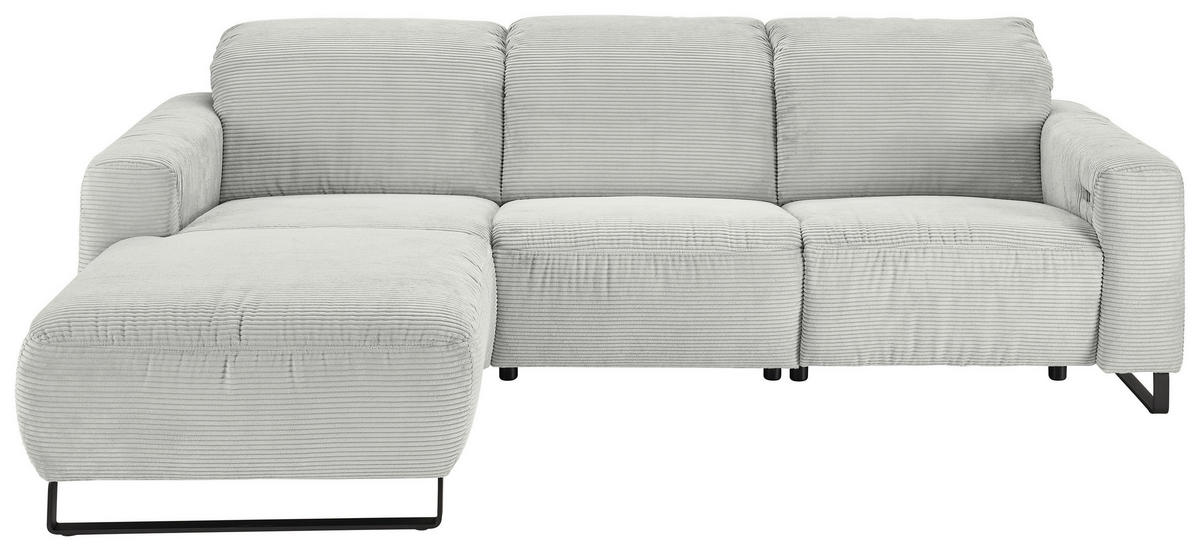 Eine Sonderportion Wohnlichkeit schenkt Ihnen dieses hellgraue Ecksofa mit Cord-Bezug. Greifen Sie zu!