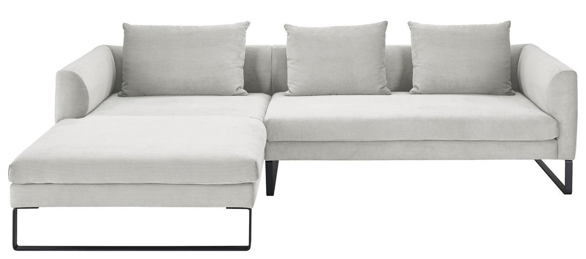 Ihr Aushängeschild, was Heimeligkeit anbelangt: ein hellgraues Ecksofa mit Cord-Bezug, das es in sich hat!