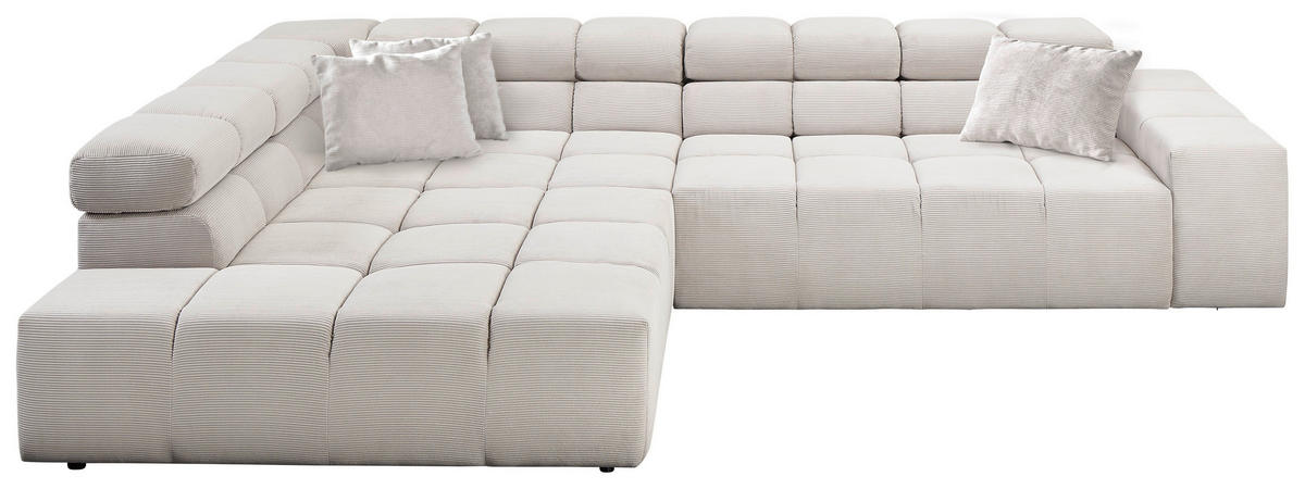 So ein hellgraues Ecksofa mit Feincord-Bezug hebt Ihr inspiriertes Home-Living auf ein außergewöhnliches Niveau!