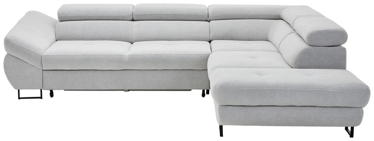 Ihr hellgraues Ecksofa mit Webstoff-Bezug verführt dazu, behaglich die verdiente Me-Time zu genießen!