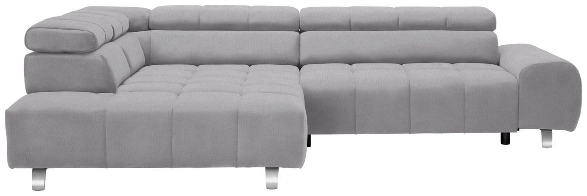 Genießen Sie Ihr Rendezvous mit der wohligen Unbeschwertheit des Seins auf diesem hellgrauen Ecksofa mit Webstoff-Bezug!