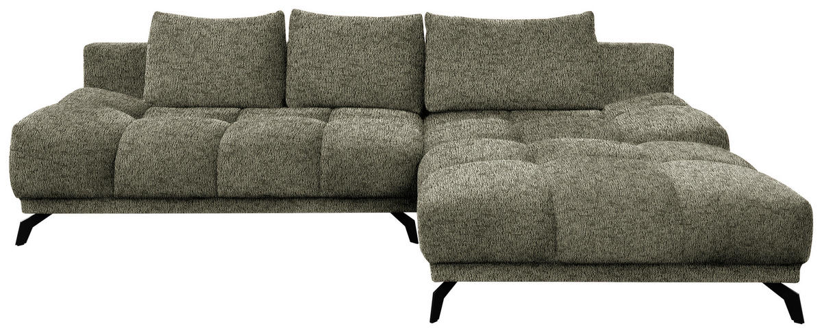Genießen Sie Ihr Rendezvous mit der wohligen Unbeschwertheit des Seins auf diesem olivgrünen Ecksofa mit Chenille-Bezug!