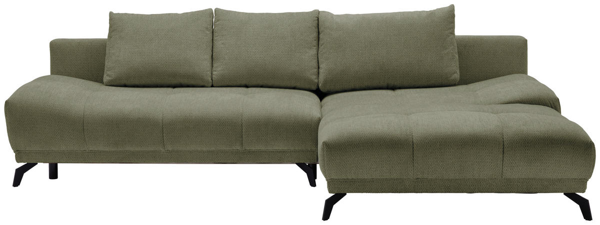 Wenn dieses olivgrüne Ecksofa mit Chenille-Bezug bei Ihnen einzieht, übernimmt Behaglichkeit das Kommando!